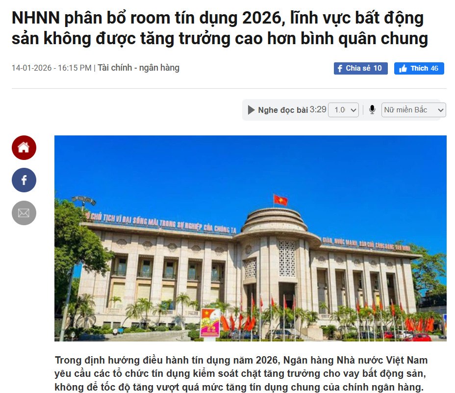 Năm 2026, bất động sản tiếp tục không thuộc nhóm lĩnh vực ưu tiên tín dụng, trừ nhà ở xã hội và khu công nghiệp. Hơn nữa, mặt bằng lãi suất đã tăng khiến chi phí vốn cao hơn trước. Trong bối cảnh này, các doanh nghiệp bất động sản buộc phải tìm các nguồn vốn khác như FDI và trái phiếu doanh nghiệp thay vì chỉ trông chờ vào tín dụng ngân hàng.