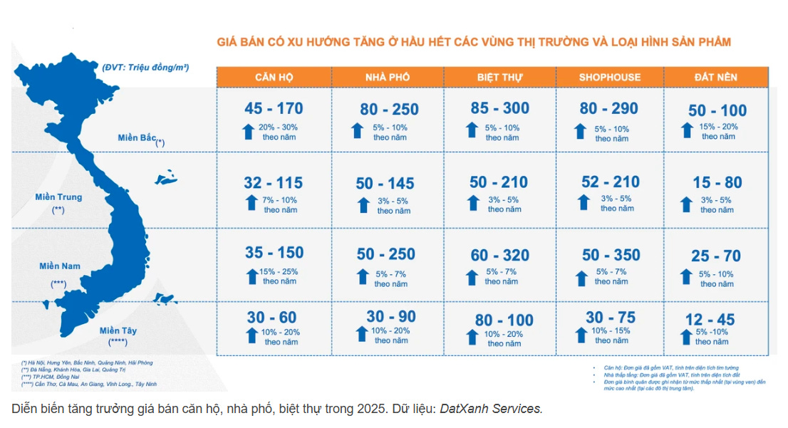 Kịch bản này không chỉ diễn ra ở một nơi. Nó lặp lại nhiều nơi khác nhau trong năm 2025, kéo giá nhà cuối năm tăng 40-70% so với cùng kỳ năm 2024 tùy theo vị trí.