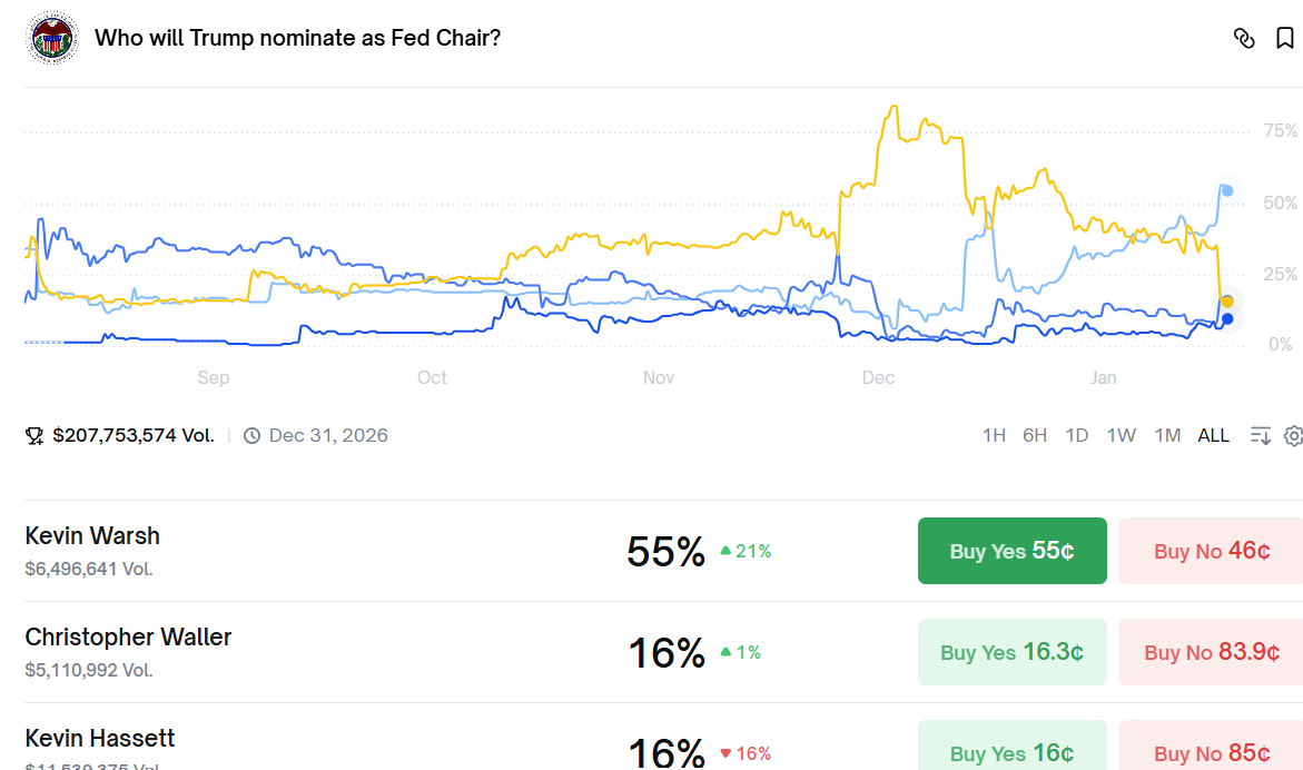 Kevin Warsh hiện đang được thị trường cá cược đánh giá là ứng viên dẫn đầu. Warsh có nền tảng vững về tài chính, từng là thành viên Hội đồng Thống đốc Fed. Mặc dù ông thuộc nhóm tiên phong đầu tư crypto, nhưng lại là người theo nguyên tắc truyền thống, không dễ dàng phá quy tắc theo ý Trump.
